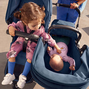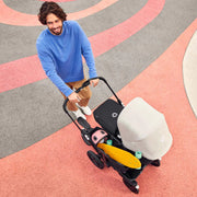 Let your children discover life together with the new and improved side by side double pushchair. Convert the pushchair from single to double in just three clicks and keep your little co-pilots side by side from birth to toddler. The reversible seats let siblings face each other, face you or face the exciting path ahead. It’s smaller than you think, and ready to go with just a one hand push.