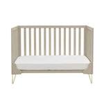 With three mattress heights, protective teething rails and an easy transition into a toddler bed, the Kimi supports your child from birth up to around four years. The steel hairpin legs are sturdy, durable and fitted with floor protectors to keep your nursery looking its best.