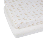 Create a calm, cosy sleep space with our Bunnychino cot bed sheets. Made from soft, breathable 100% cotton jersey, this 2-pack includes one star and one stripe design, perfectly matched to the rest of the Bunnychino nursery interiors collection for a soothing, coordinated look.
