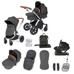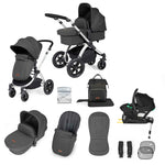 Ickle Bubba Stomp Luxe 12 Piece Travel System with i-Size Nimbus Car Seat & Spin ISOFIX Base - Charcoal Grey