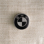Metal BMW badge on the peek-a-boo canopy flap