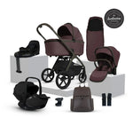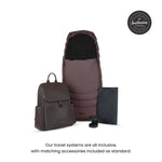 Included in the Accessory Bundle: Cove pushchair seat and chassis, bamboo-lined carrycot, vegan leather changing backpack, footmuff, cup holder, universal car seat adaptors and rain cover.
